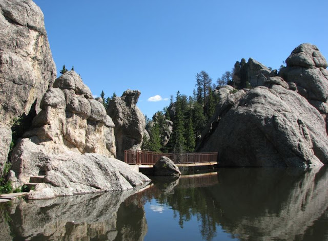 Sylvan Lake, known as the "crown jewel" of Custer State Park, is located in the Black Hills of South Dakota. Created in 1881 when Theodore Reder built a dam across Sunday Gulch. It is also popular as a starting point for excursions to Harney Peak,The Needles and Little Devil's Tower. The lake was featured in Disney's 2007 film National Treasure: Book of Secrets. The film made the lake appear to be located directly behind Mount Rushmore when in reality it is actually five miles southwest of Mount Rushmore.We agree that this area is a "crown jewel" and is certainly among the most picturesque areas in the Black Hills of SD. I mentioned a connection to Chief Crazy Horse in our previous post. This is the area that Crazy Horse and his father Wagula came for their vision quest meditations. We can see why.