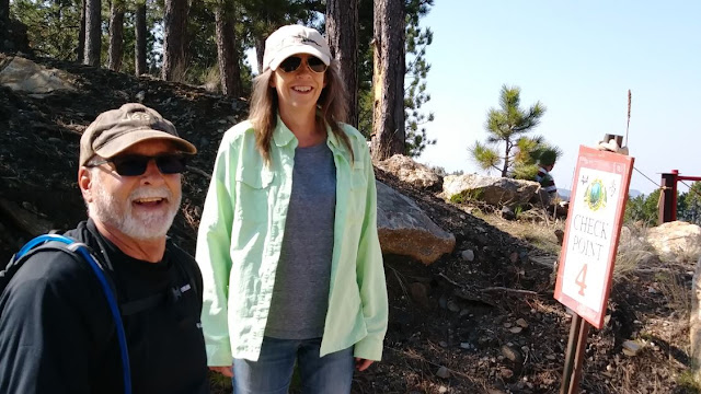 The whole gang lines up on a great day for a 6.1 mile walk up to the Crazy Horse mountain sculpture near Custer, SD. L to R: Michelle, Gari, Jim & Steve.